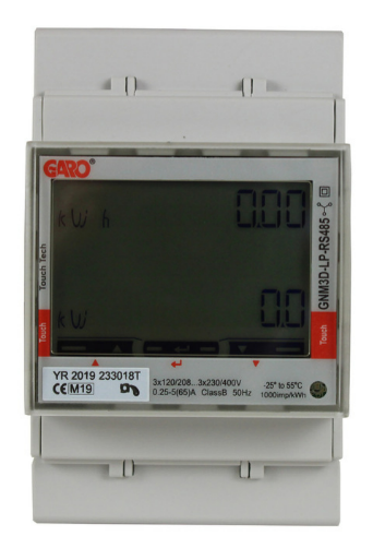 GARO energimätare 3-fas, för elanläggning med strömproduktion, t ex solceller. Lastbalansering för kontrollerad strömproduktion och strömförbrukning till 3-fas laddbox eller flera sammankopplade laddboxar.